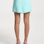 The infamous Summi Summi Skort reimagined. Offering a perfect A-line cut mini skirt silhouette with a concealed short underneath. Made from a linen/ rayon blend in soft aqua hue, this versatile skort provides both style and practicality.