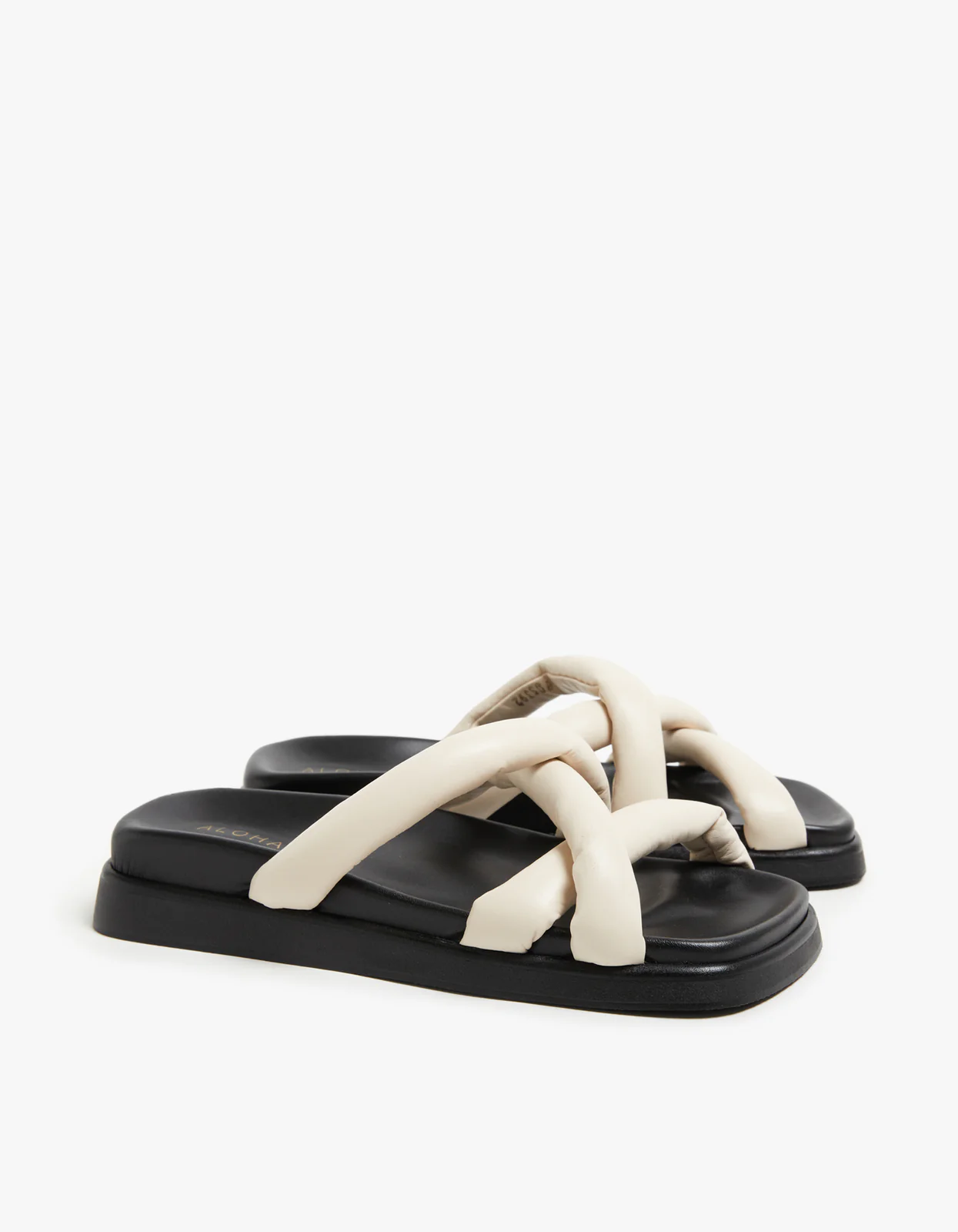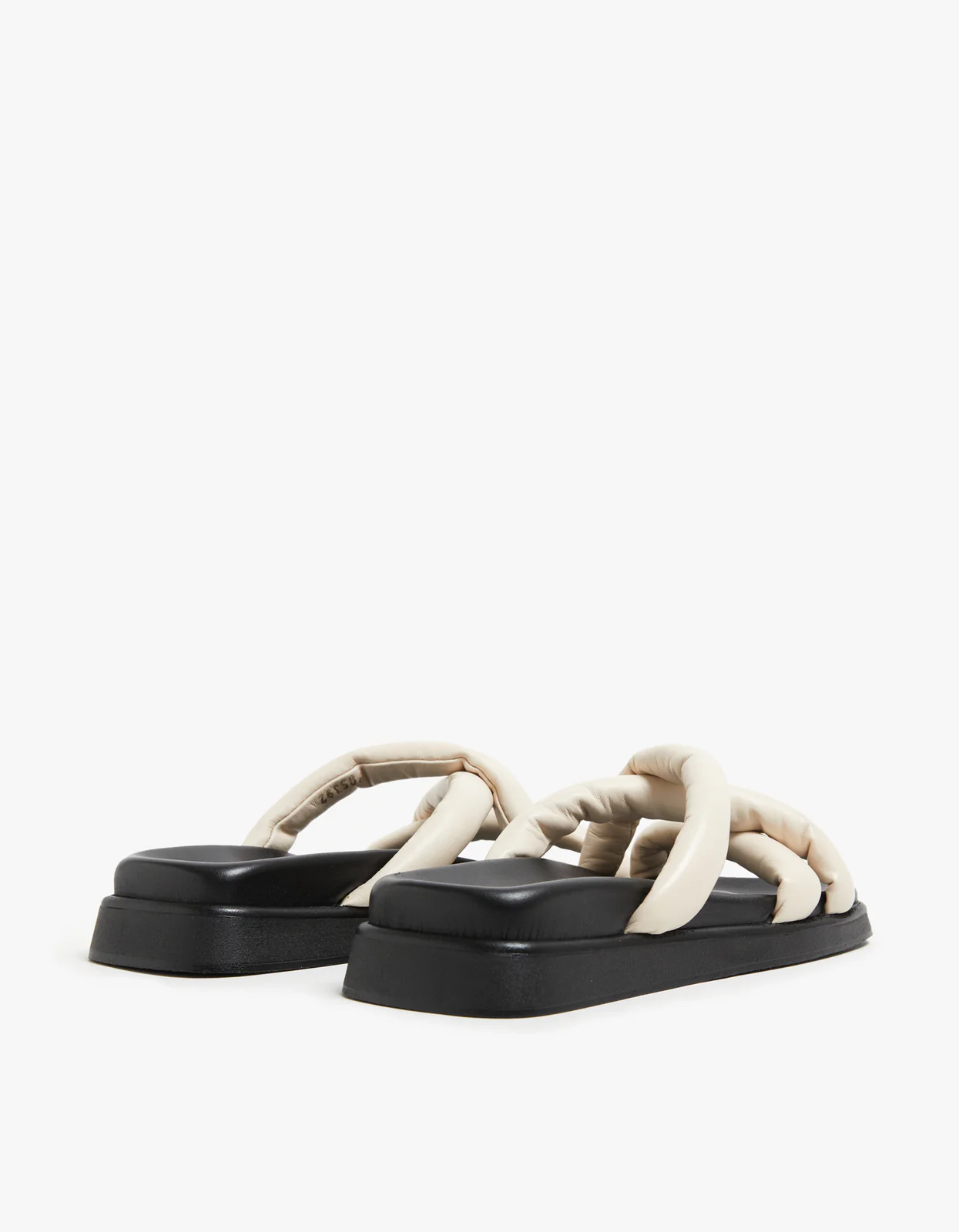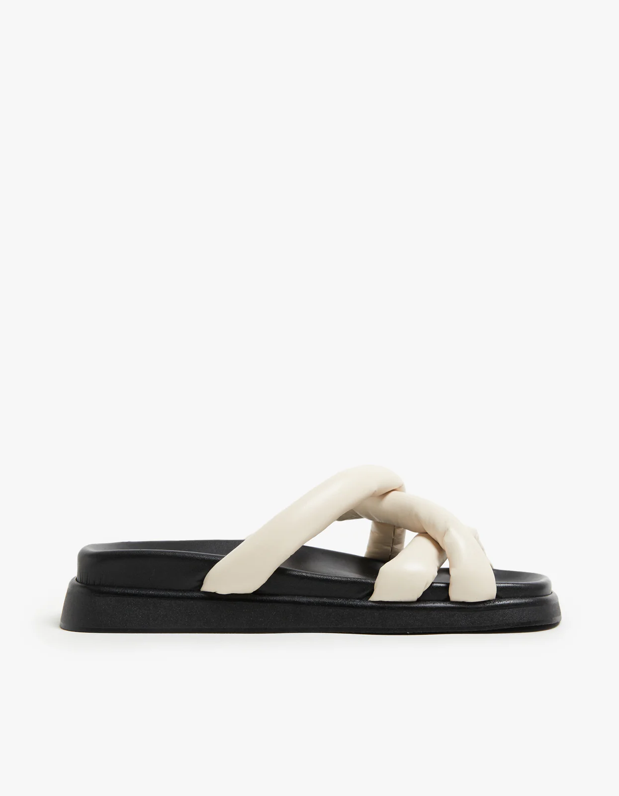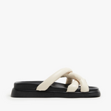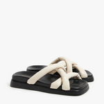 A minimal design purposefully crafted to stand the test of time - The Slip On Cross Sandal are a staple slip-on to compliment every outfit. Crafted from supple white leather, featuring tubular criss-cross straps for an asymmetrical yet secure instep. With added sole cushioning for comfort, these are going to be an irreplaceable asset this summer.
