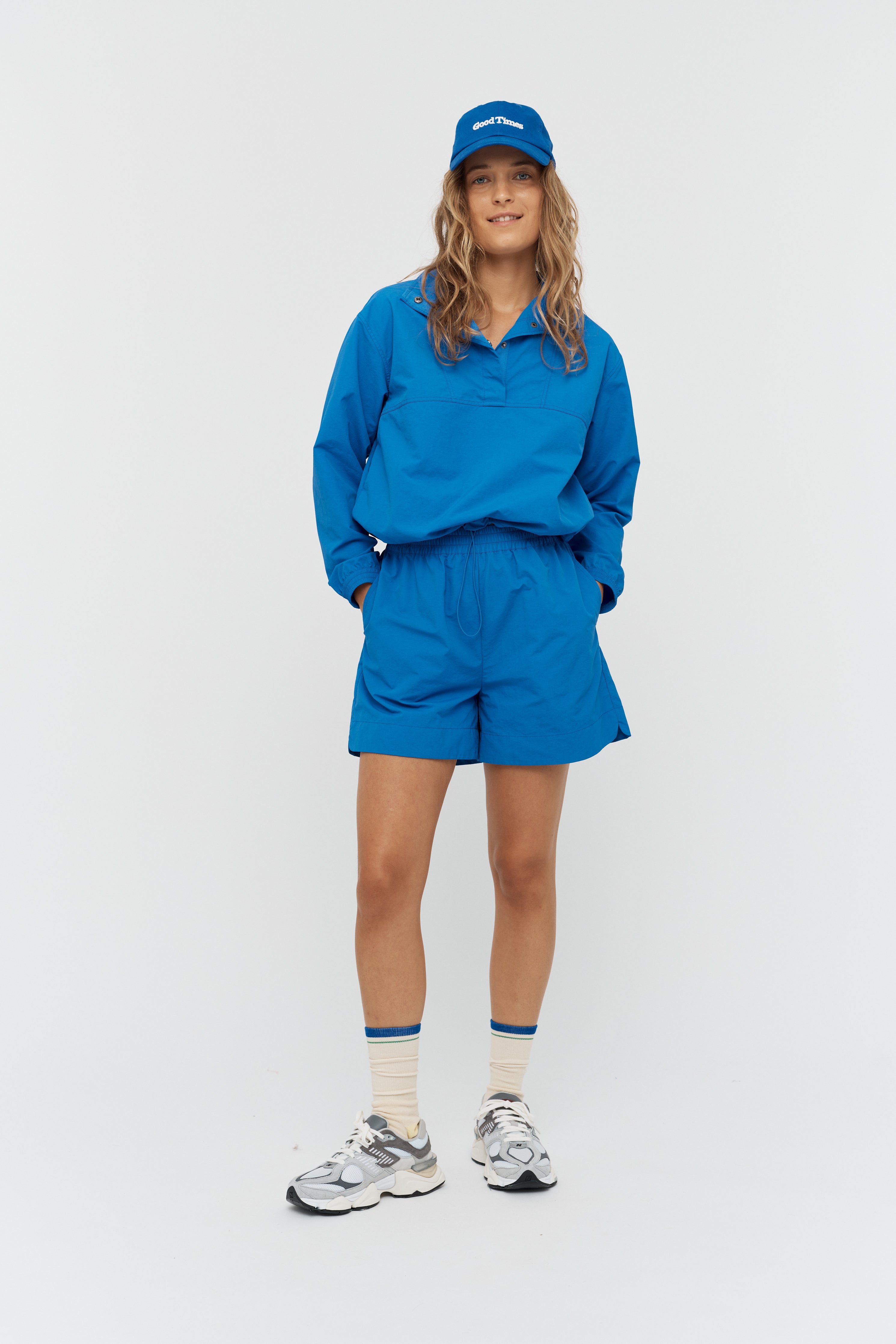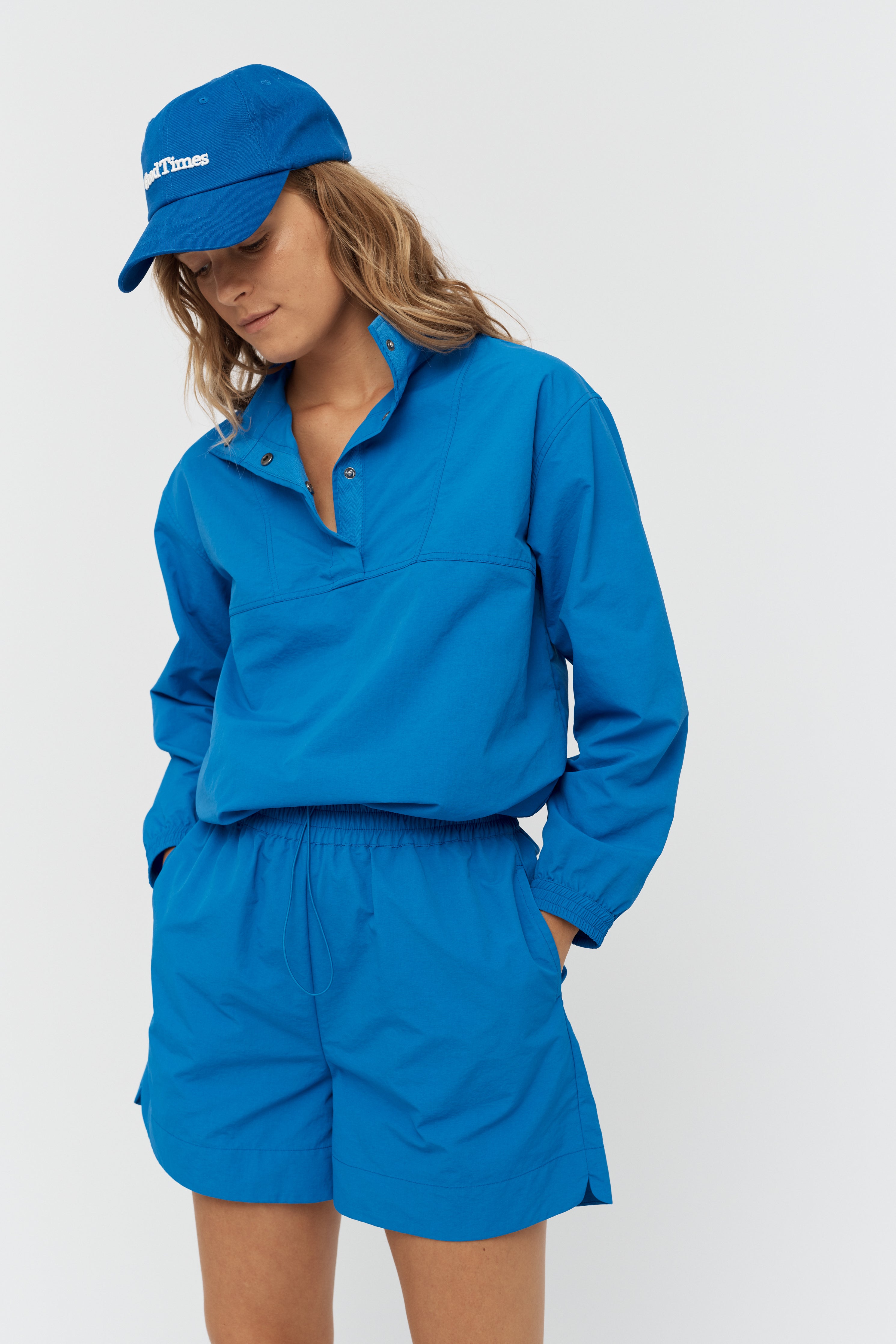 LMND channels understated cool, drawing inspiration from '90s anoraks. This jacket, crafted in Electric Blue Nylon, features a sporty look and drop shoulder sleeves.