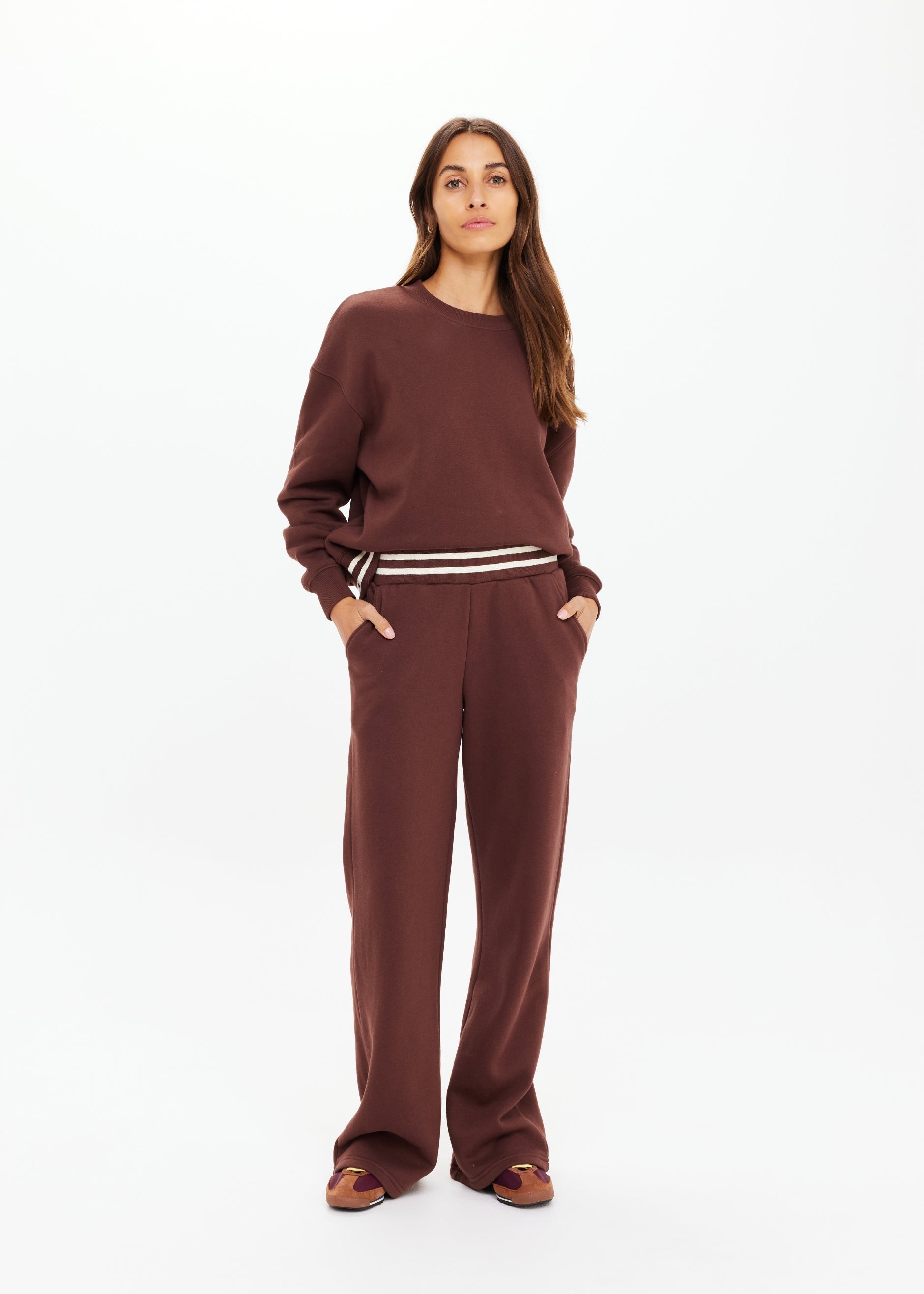 - Organic cotton fleece fabrication in chocolate