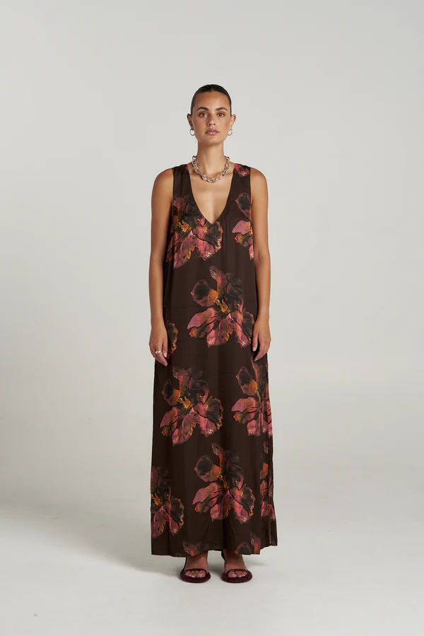 V Neck Maxi Dress - Chocolat Petals