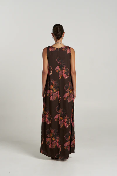 Romantic and flowing, the V Neck Maxi highlights the expressive Chocolat Petals print across a graceful silhouette. Designed for movement and elegance. Perfect for weddings, sunset dinners, or special occasions.