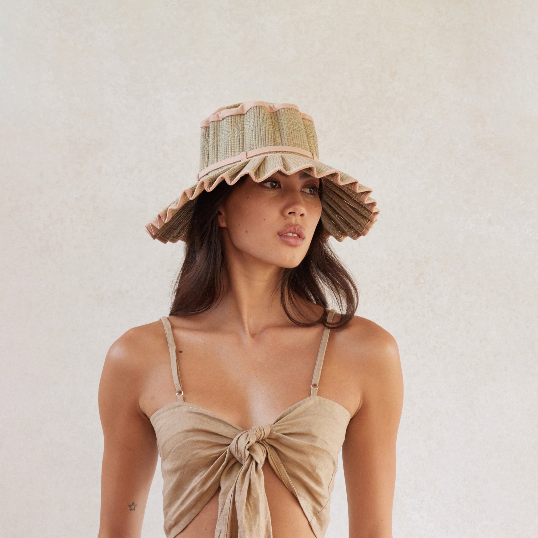 The Vienna is specifically designed to collapse and fold like origami, due to the sunray pleats, for ease of travel. Optional ties are provided at the base of each hat to be used for anchoring during breezes.